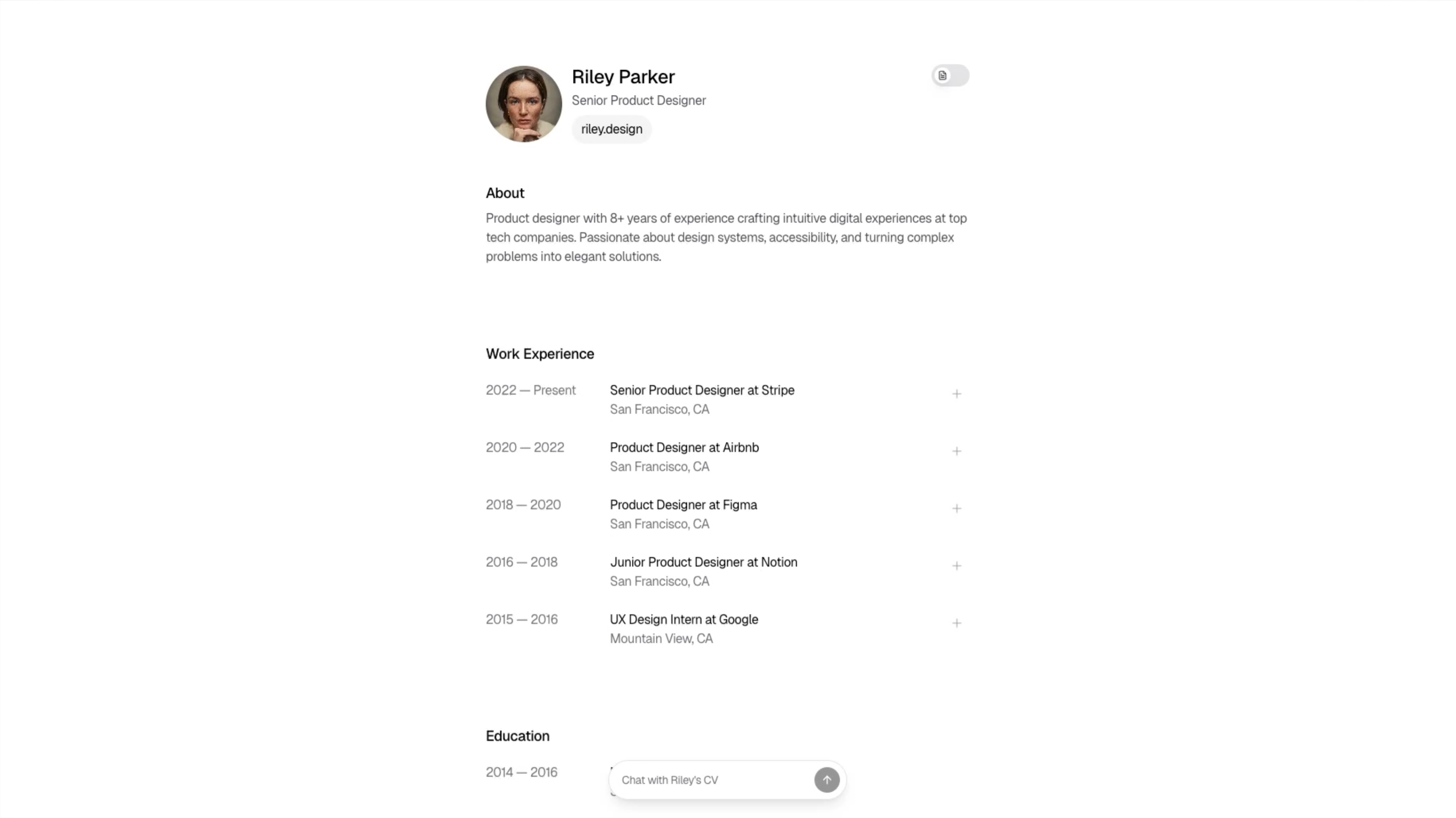 Your work, resume, and profile all in one place. Ready to share with a single link.